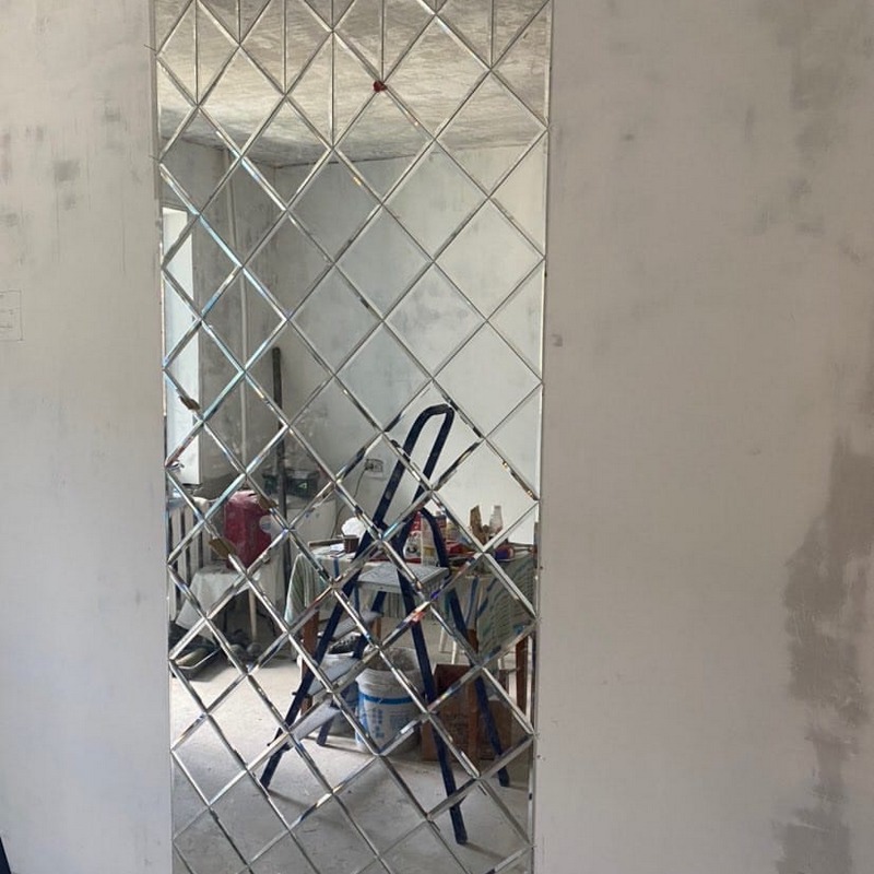 Использована зеркальная квадратная и треугольная плитка с фацетом.